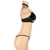 Rohkeat leikkaukset ja pehmeä samettipinta luovat kokonaisuuden, joka tuntuu yhtä hyvältä kuin näyttää. Säädettävät rintaliivit yhdistyvät viettelevästi kaulapantaan ja stringejä voi säätää lantiolta juuri itselleen mukavaksi. Tässä asussa yhdistyvät rohkeus ja herkkyys – se toimii täydellisesti illan yllätyksenä tai osana omaa hemmotteluhetkeä.