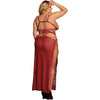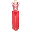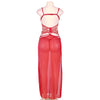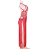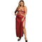 Een lange, opzichtige outfit die de aandacht trekt. Het blootgestelde oppervlak flitst precies tussen de banden en de stof. Laat je meenemen door de rode bedel en geniet.