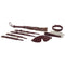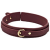Een opvallende bordeauxrode beugel bezet met goudkleurige metalen onderdelen. Het materiaal is aangenaam aanvoelend, huidvriendelijk, geurloos en duurzaam kunstleer. Metalen onderdelen en sloten van bijzonder duurzaam en roestvrij materiaal.