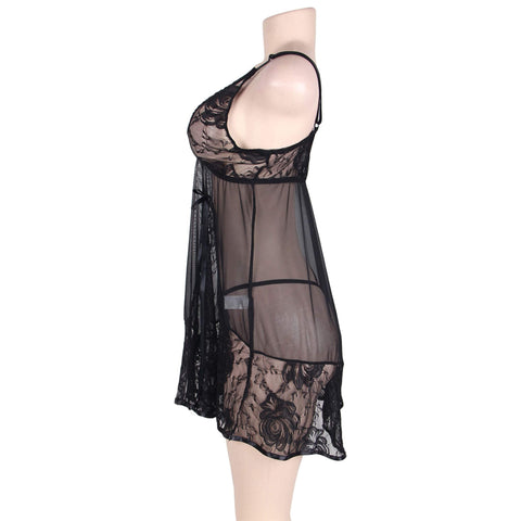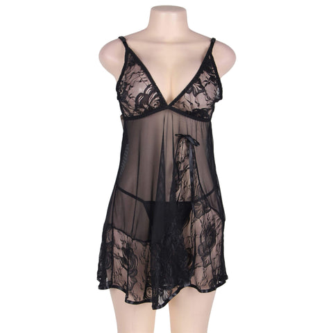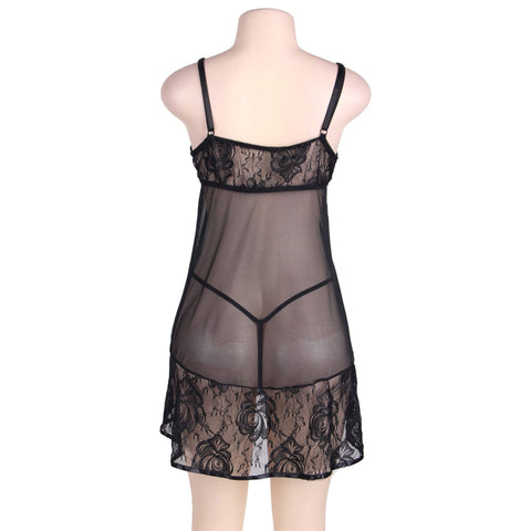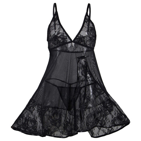 A classic, stylish black outfit that is every woman's standard accessory. Rose lace and sheer fabric - just the right babydoll for seduction. Adjustable shoulder straps make the fit even...
